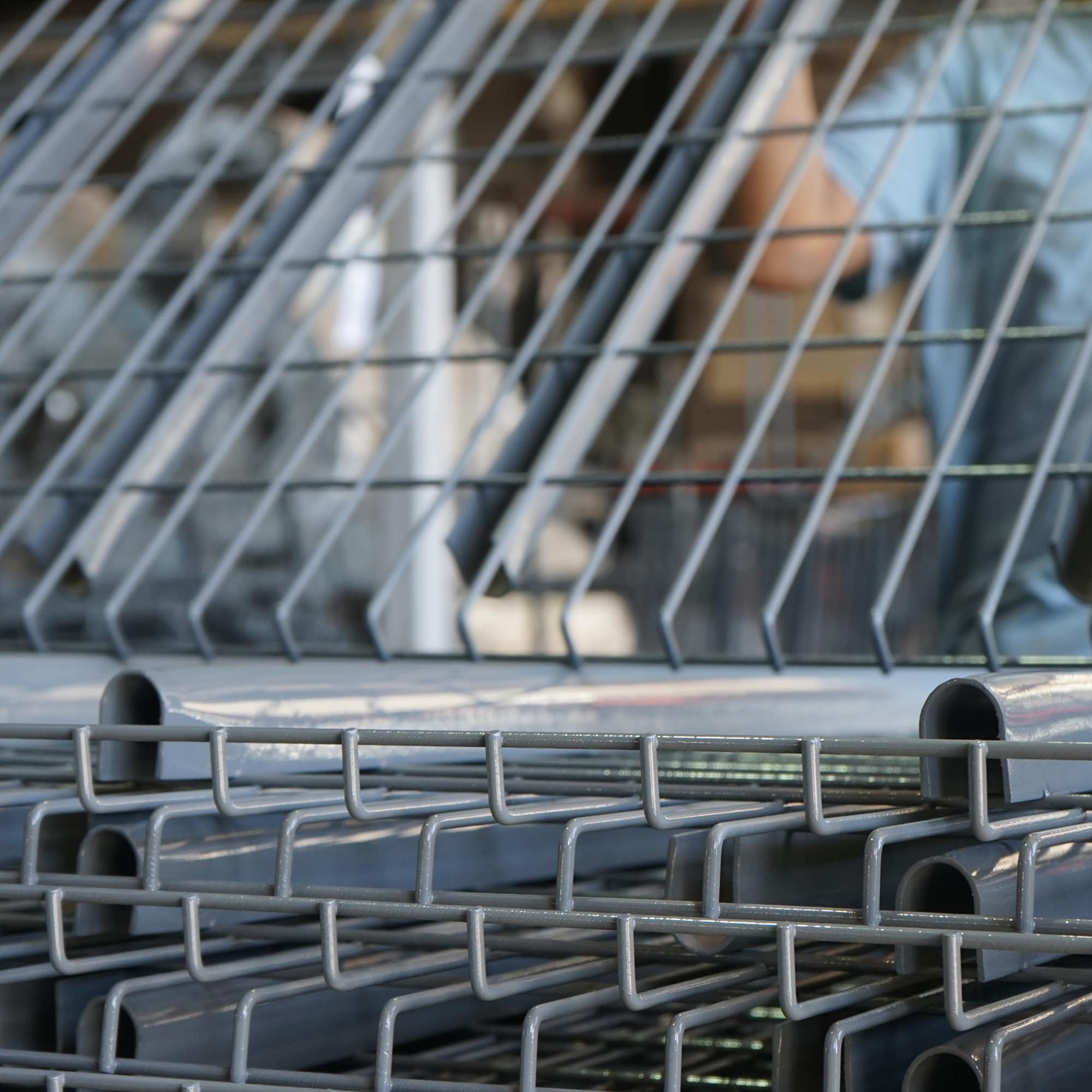Wire mesh panels that prevent items from falling off racks, improving workplace safety and security.